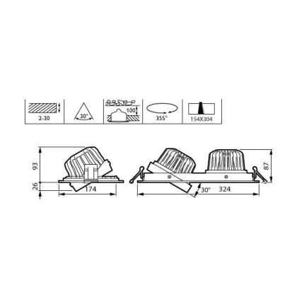 Philips LED Spot Greenspace Accent Gridlight Aluminium Zwart 62W 4000lm 120D - 830 Warm Wit | 154mm - IP20 - Interact Dimbaar